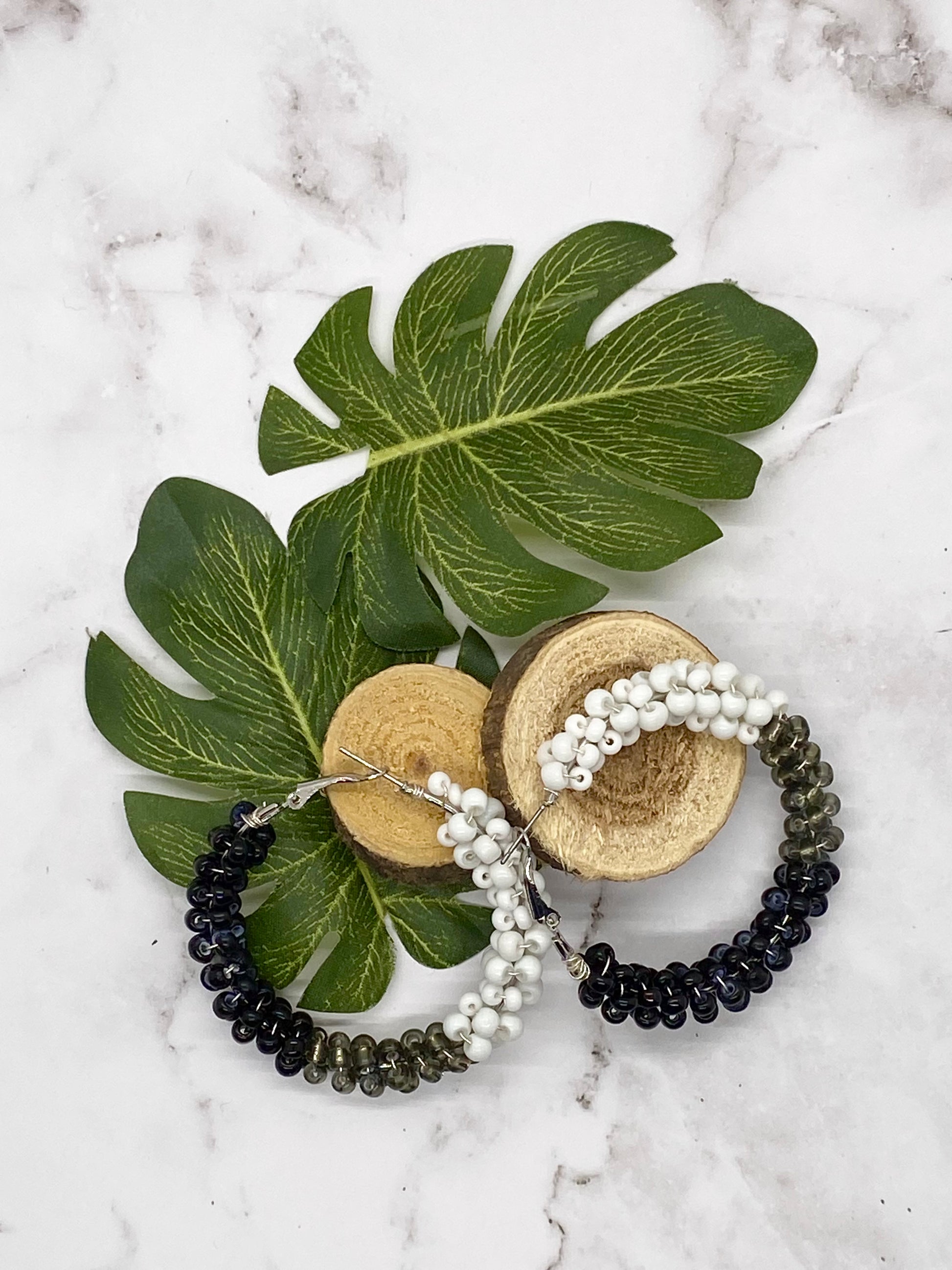 Handmade Seed Beaded Hoop Earrings